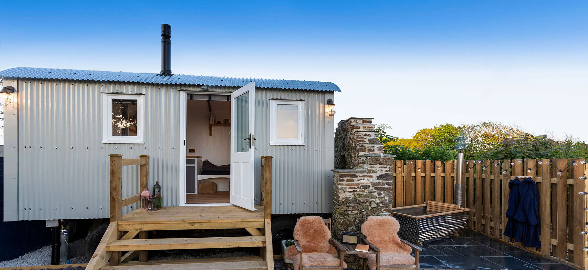 At Hutterly Beautiful, we are delighted to offer couples the opportunity to stay in a luxurious shepherd’s hut, surrounded by panoramic views across rolling green fields towards Widemouth Bay. This is the place to kick back, relax and contemplate, where you’ll be inspired by your surroundings, far from the madding crowds.